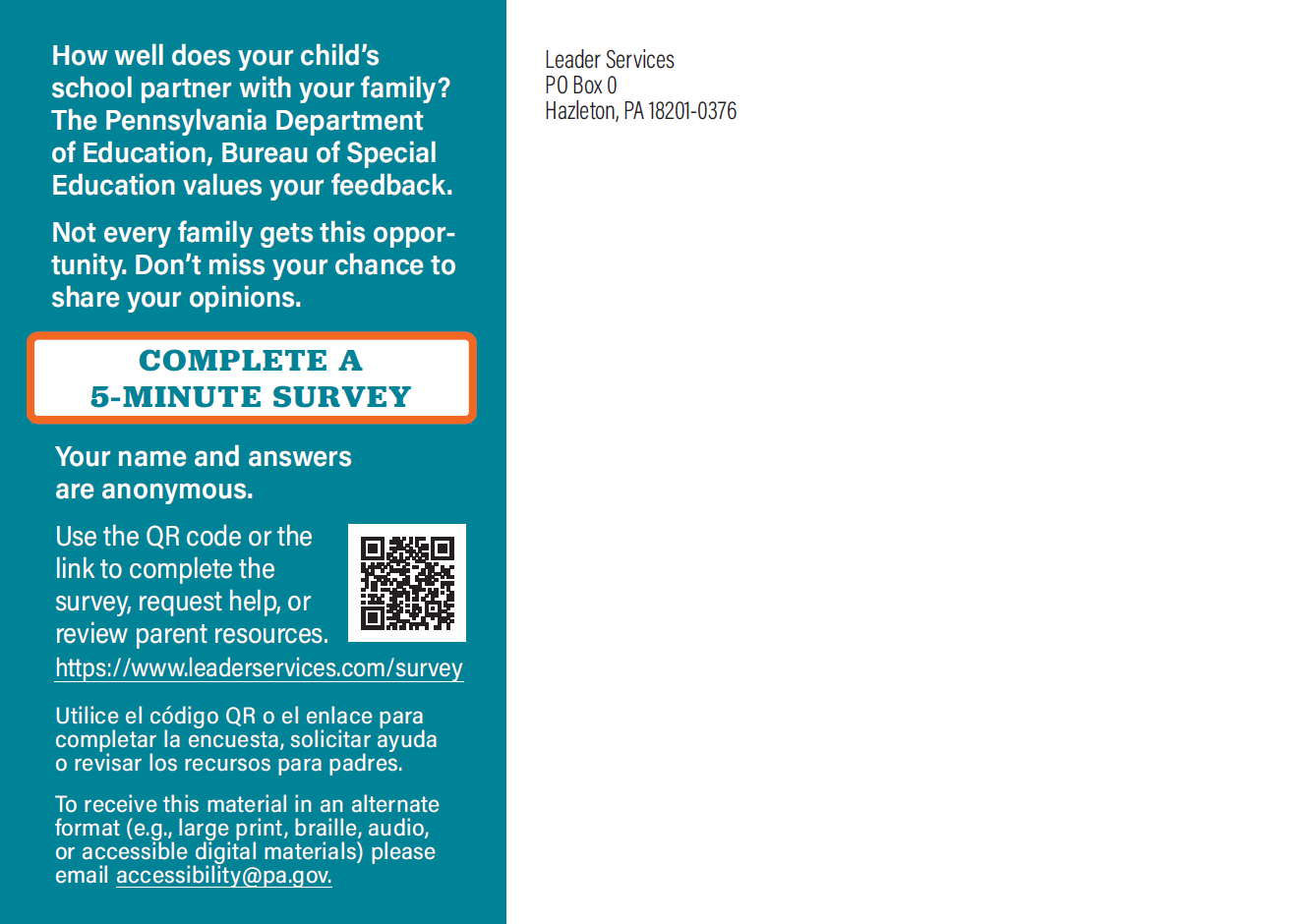 Every response counts! Your answers are confidential – our school won’t know who participated, but your input will help shape special education services across Pennsylvania. Join the thousands of families who have already shared their voices! Don’t miss your chance to make your voice heard. Your feedback matters!
